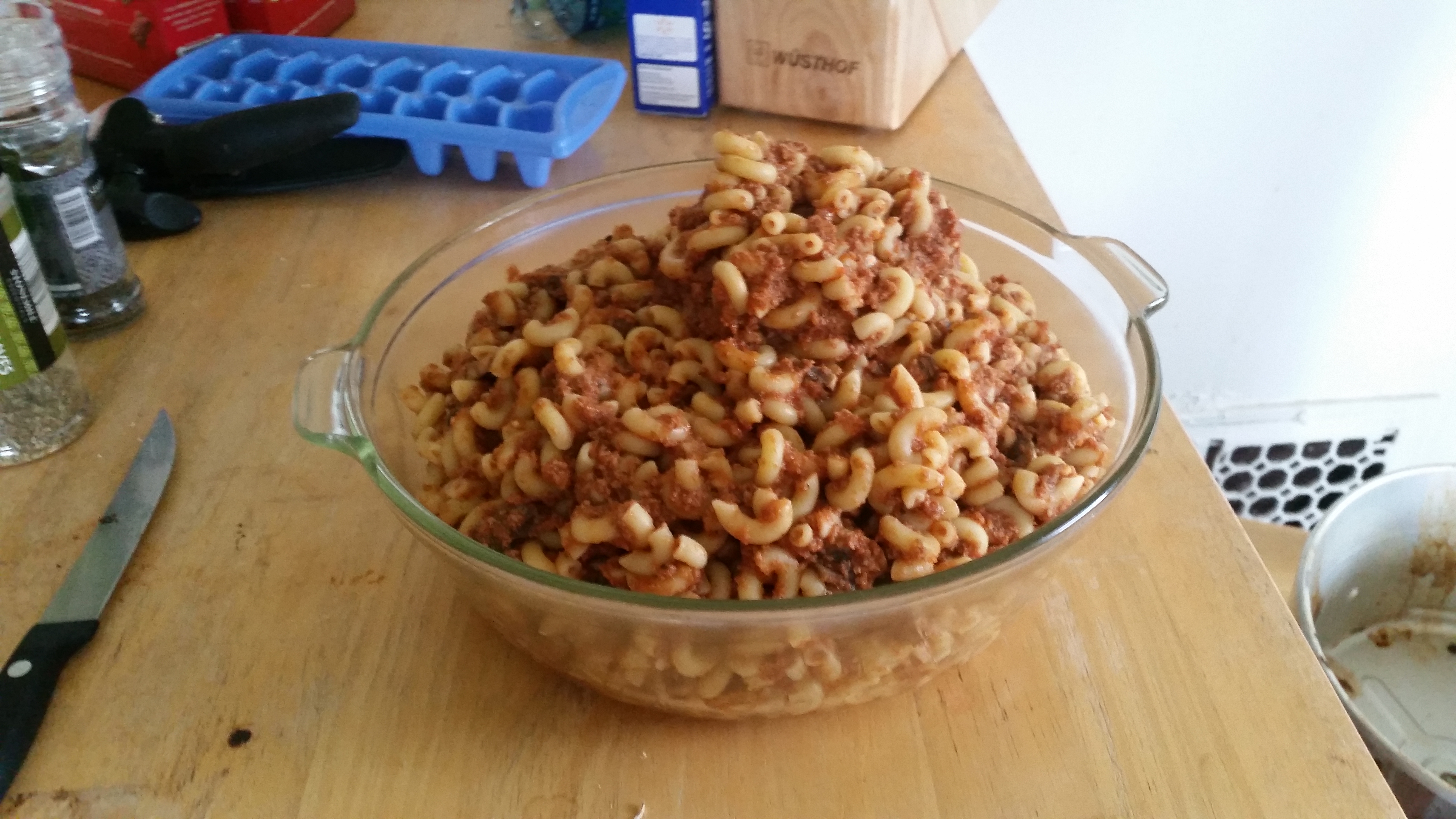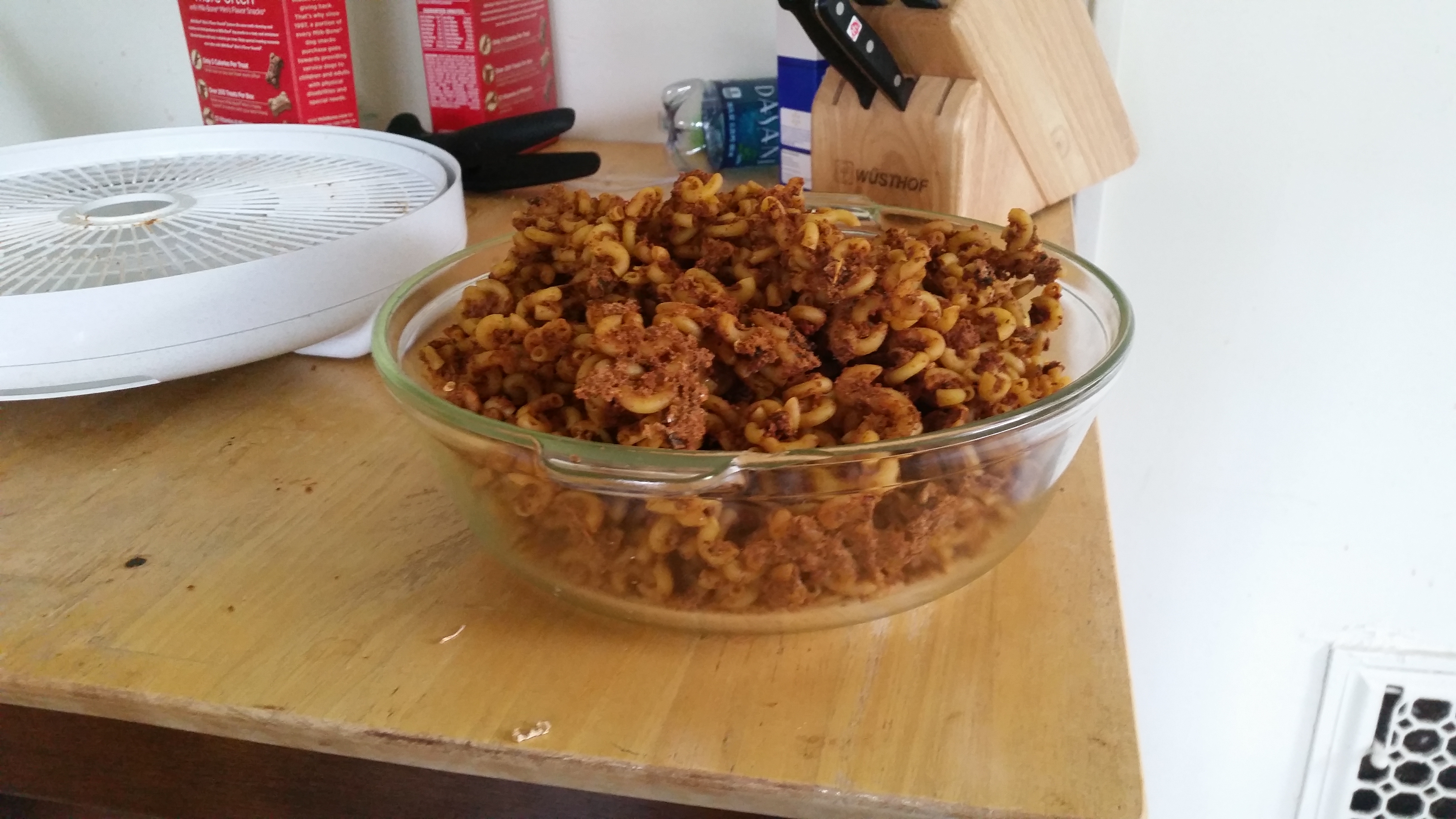As you can see, you’re not going to lose a whole lot of mass with this meal. 10+ cups of pasta turned into roughly 8, and most of that loss came from water being drawn out of the sauce. The size of the macaroni stayed the same for the most part. This came out to 2 C of pasta per portion.
