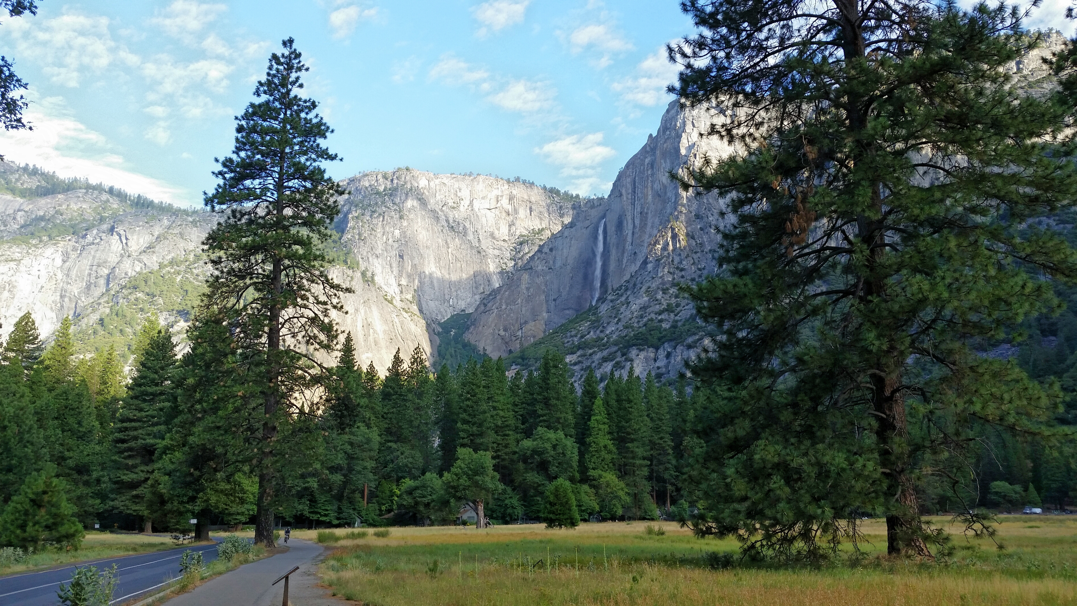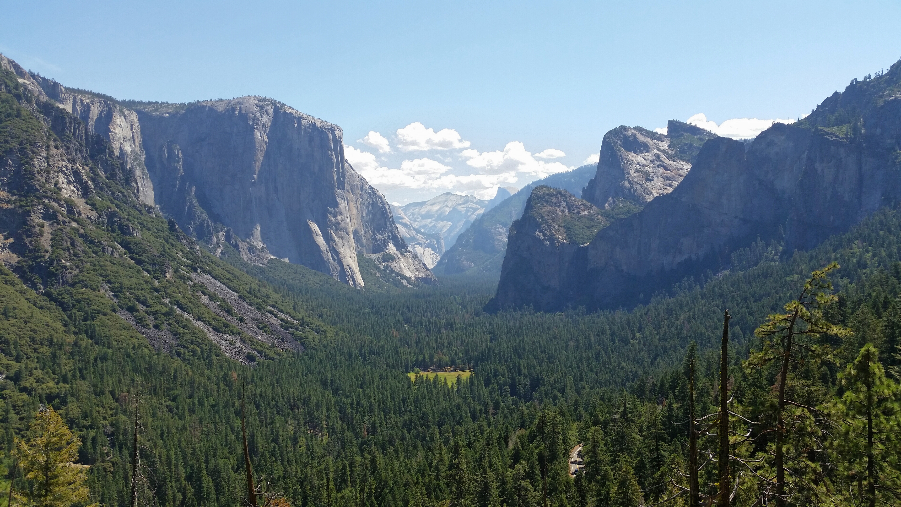 The waterfall! How had I missed it the day before?! I take a picture and walk on to the visitor center to catch my bus. While riding I talk to a young family from Sacramento. They tell me its not uncommon for the falls to be dry at this time of the summer and then come to life again a day after heavy storms in the mountains. I had noticed the thunder yesterday as I was making camp, so the rainfall must have worked its magic. Just past El Capitan (the sheer granite wall that’s three times the size of the Empire State Building, or so I’m told) the bus driver lets me off and points me in the direction of Tunnel View.