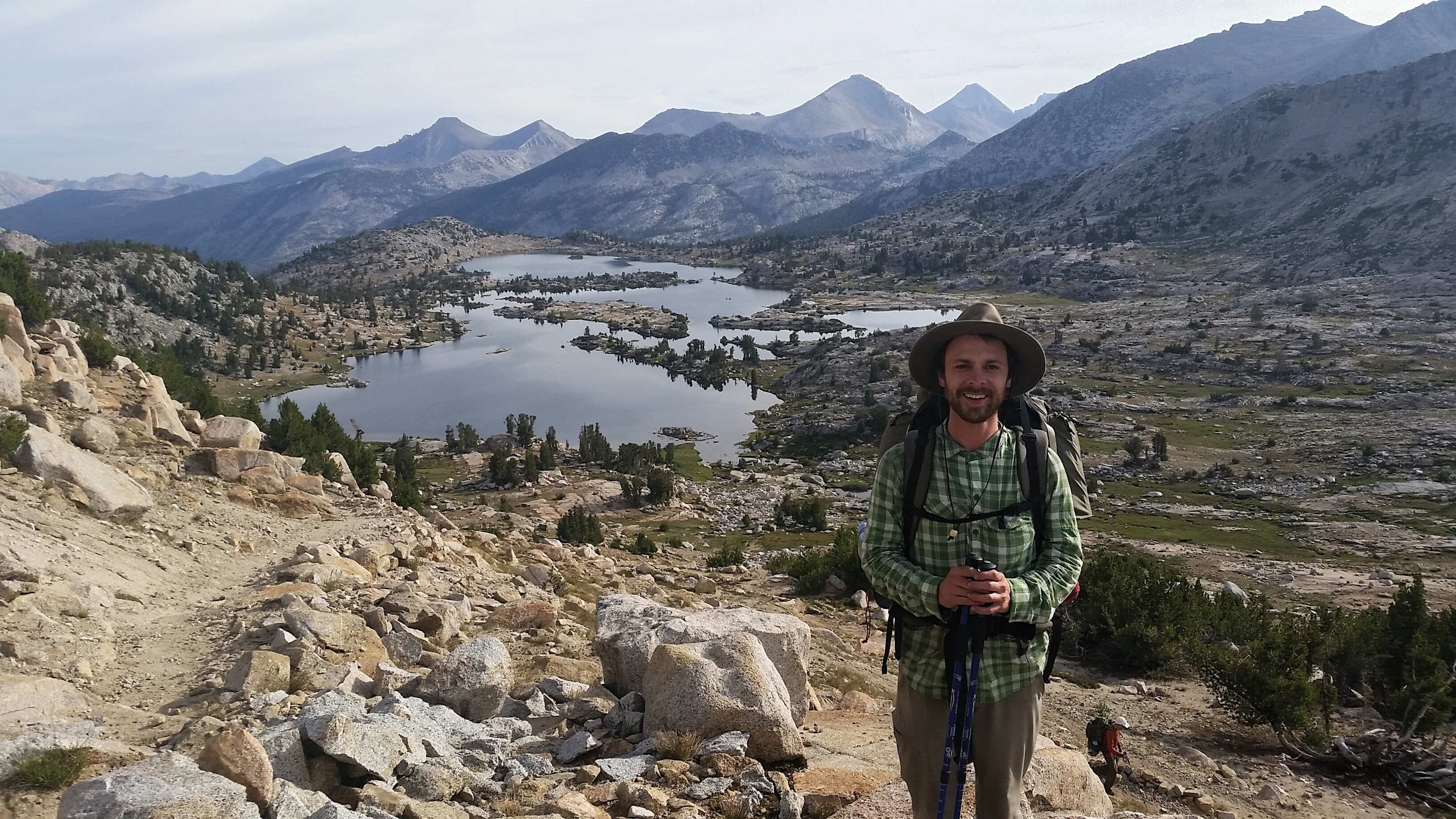 I am the last person to leave Marie Lake in the morning. Somehow I overslept. As I’m breaking camp Jeremy and Karley walk off and I learn they’re staying near Muir Trail Ranch in the evening, just as I am. Before we get there we have another mountain pass to get over, but its the easiest one of all. Seldon Pass is just above Marie Lake and requires a climb of merely 300 feet. Some days I’ve climbed more than that before I could even rub the sleep from my eyes. A large group from the Bay Area have been hiking around me since Silver Pass, and I reach them right near the crest of Seldon. One of the men, James, offers to snap my picture.