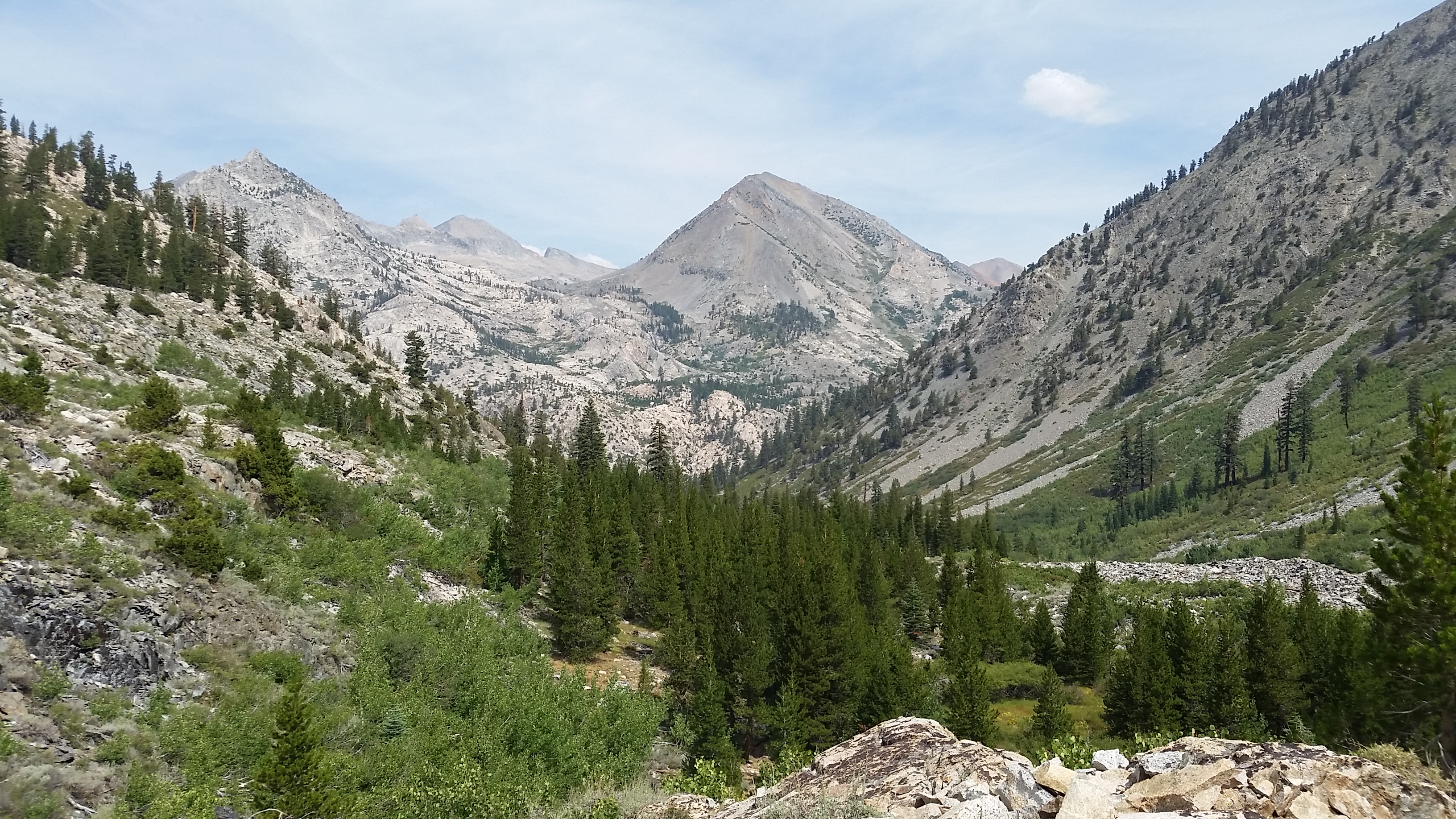 This is a special section, with water everywhere I look.  Streams and rivers, large bodies of water, tall flowing grasses, trees and scrub plants: it has it all.  The Painted Lady, which is a mountain that actually looks like a woman’s made-up face, appears.  Soon too does Fin Dome, which is a mountain that actually looks like a fin of a shark.  Those who named these mountains had a true sense of the literal.