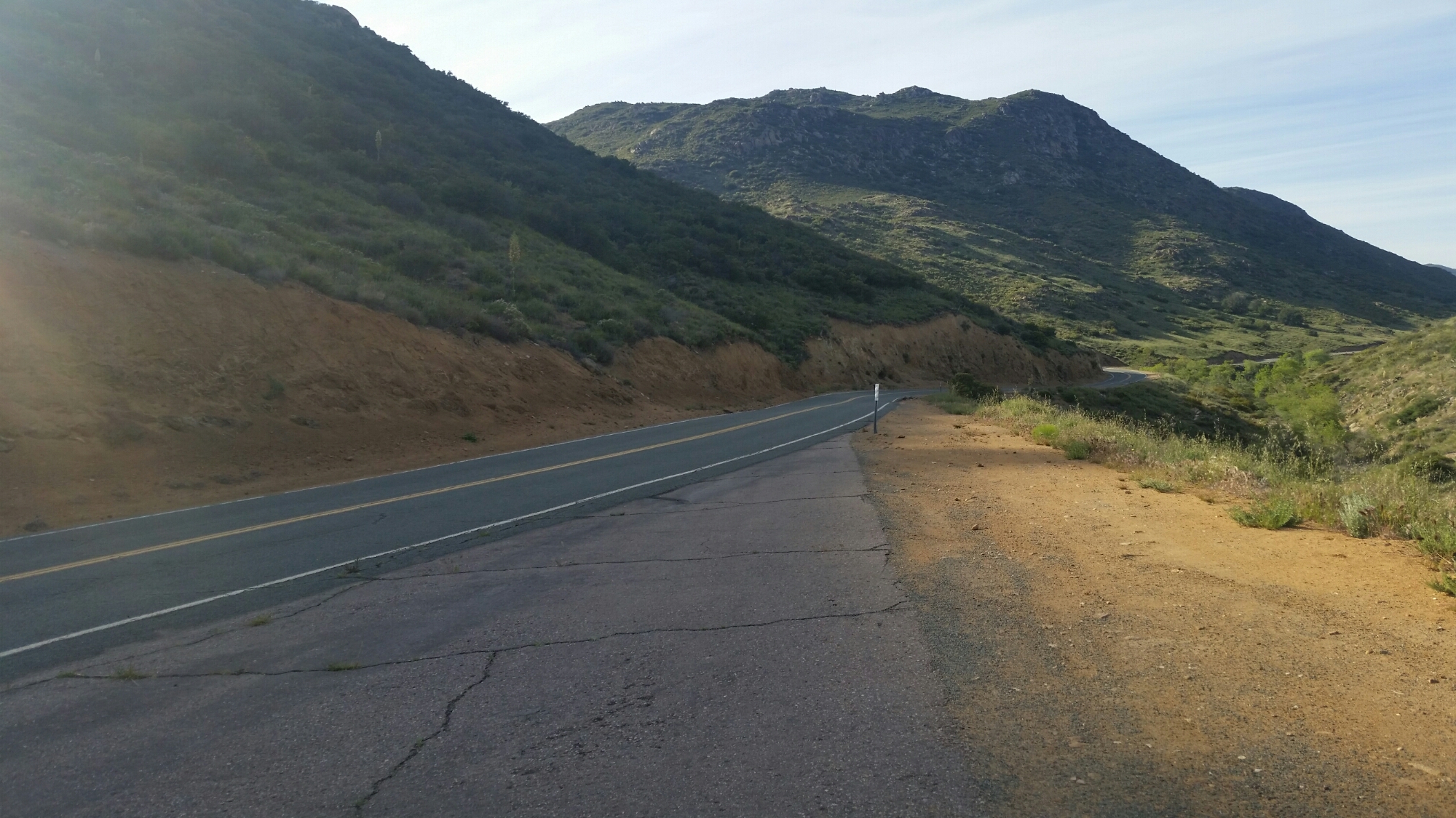 The sun hasn’t rounded the bend yet and I start the 1000 ft. climb up to Lake Morena in fine spirits. Why does everyone try to get to Lake Morena on the first day? It’s a tough climb, but so cool and beautiful in the morning with a fresh pair of legs.