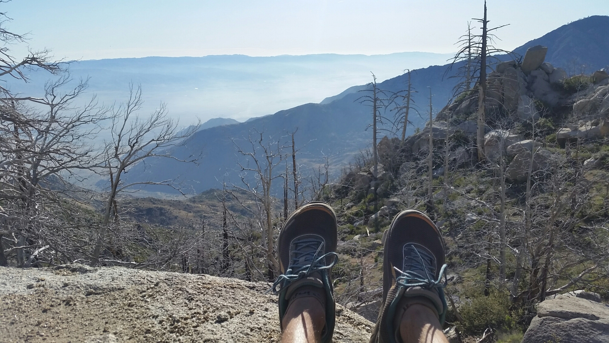 I’ll lose something around 9000 ft of elevation between yesterday afternoon and today, when I reach the desert floor. 9000 ft over the course of roughly 20 miles. Luckily I bought athletic tape in Idyllwild which seems to be the answer for my hurting foot.