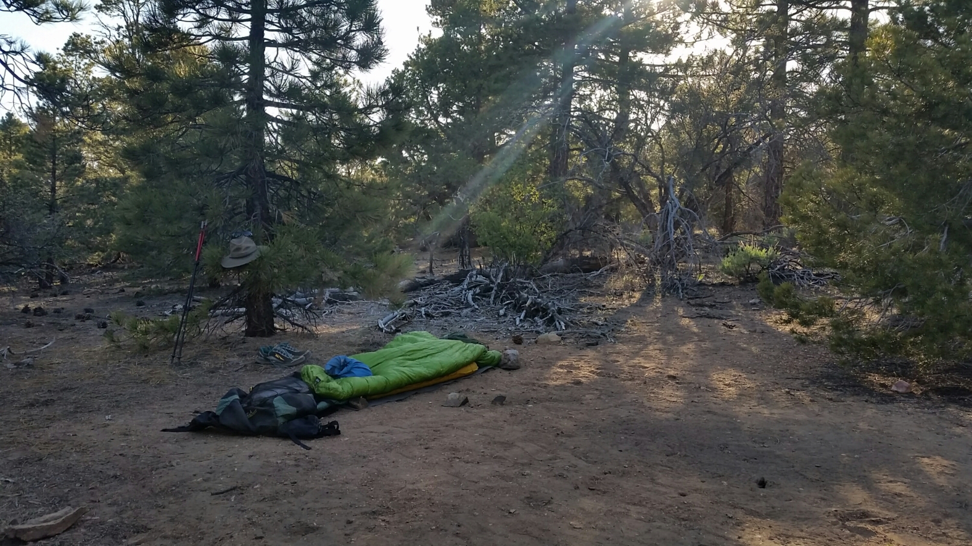 I find a nice big campsite for the evening and watch everyone else on trail push through to camp at the next water source, which is 2.5 miles away. I might actually have the place to myself tonight, a very rare occurrence on the southern PCT. It’s cold up here at 7600 feet, and windy, but I’m cowboy camping anyway and feeling nice and warm all tucked in.