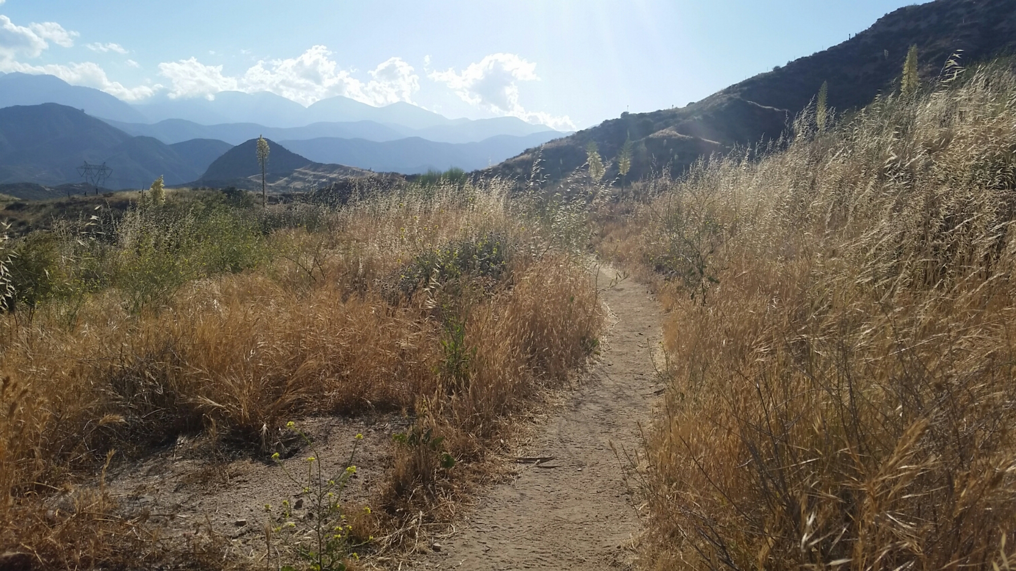 The trail miles fall away and Cajon Pass draws nearer. The sand hills fall away too and I come to the great vista looking out over highway 10 in the valley below. Beyond are the 8000+ ft mountains I’ll climb tomorrow.