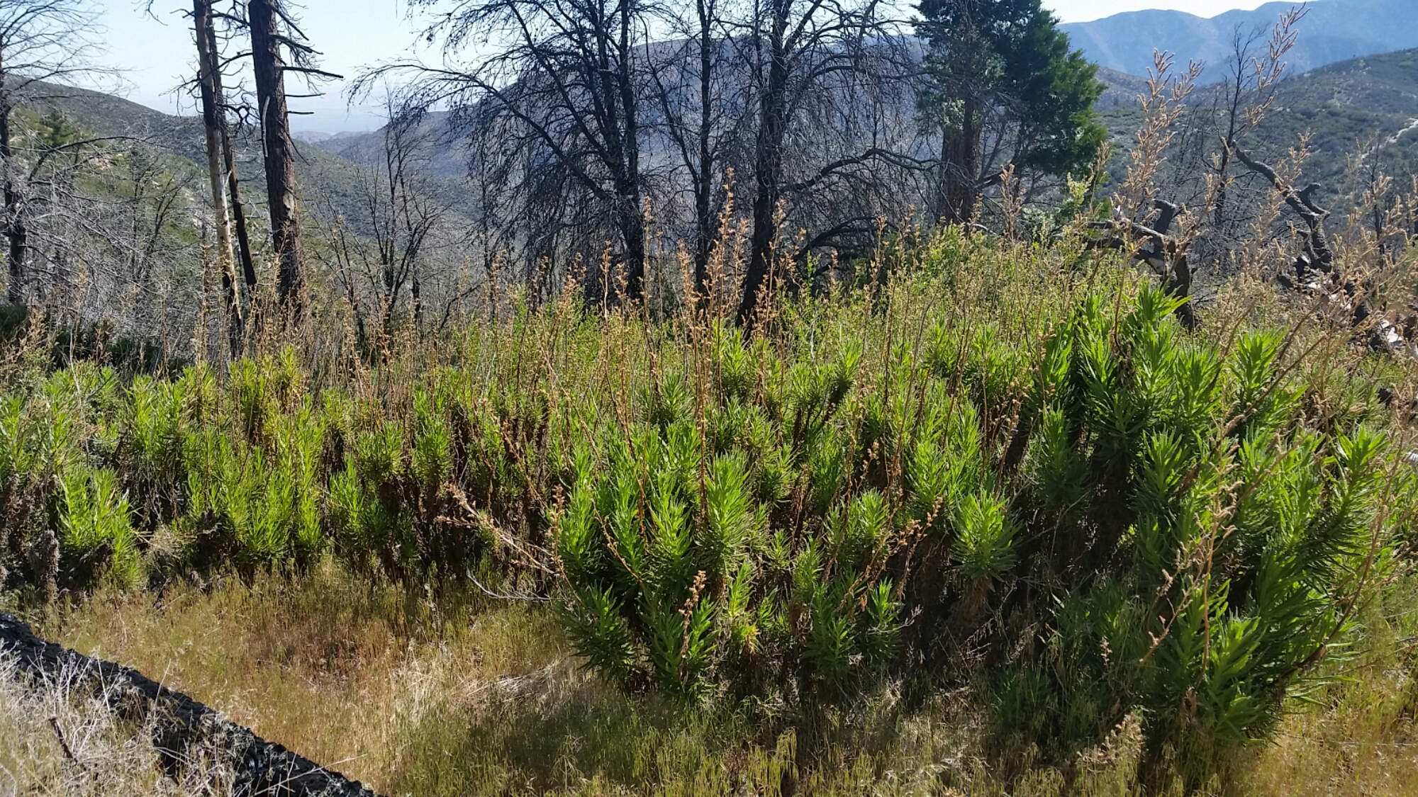 A group of us huddled at the fire station in the middle of nowhere for lunch and gathered water. All the campsites around here burned with everything else so it’s a long walk to the next place to lay my head for the night. Poodle Dog bush was rampant around these parts until the trail crews did a fine thing by killing it all and clearing it away.
