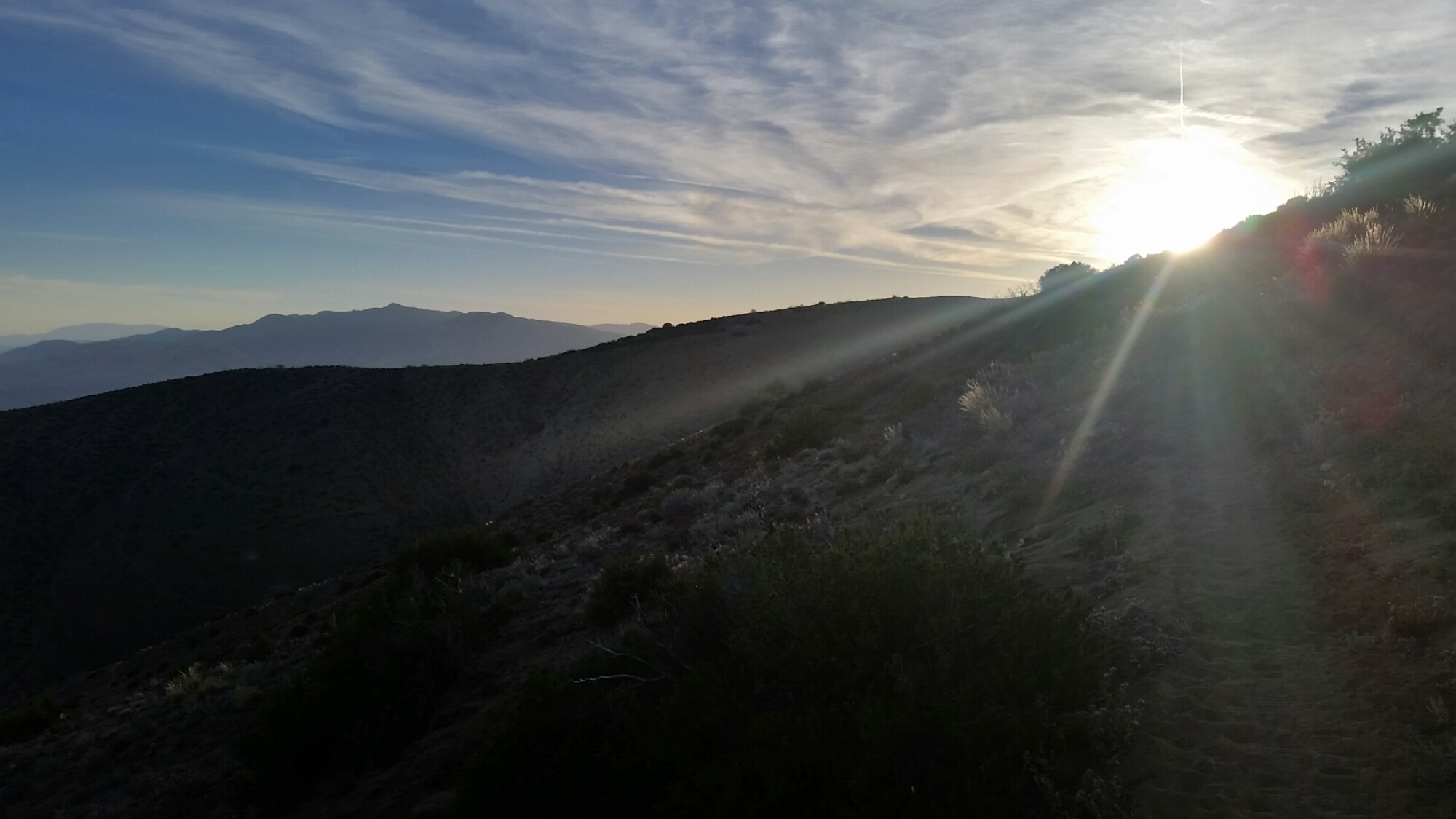 The mountains above Tehachapi are loose sand, and sometimes my whole foot sinks in. There’s some big elevation gain this evening and it makes the going slow. But the views are spectacular and I’m hitting the ridges and saddles at the perfect time. The lights low, and the shadows are deep into the folds of the mountains.