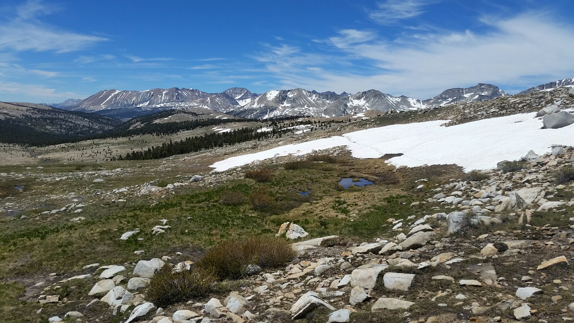 Bubbs Creek lines the valley and roars with all the snowmelt.  I hike with Hodge-podge (PCTer) and Cedric (weekend hiker), and we camp near the stream’s banks.  Mosquitos are out, and when I lie in my tent to calculate my mileage I realize I pulled a 20+ mile day in the Sierra and covered Forster Pass to boot.  It’s a great feat and I top it off by polishing off M&Ms, half jar of Nutella, 2 Snickers bars, and a Clif Bar for dessert.  The greatest day on the PCT so far, even if my eyes feel red and burned from all the sunshine.