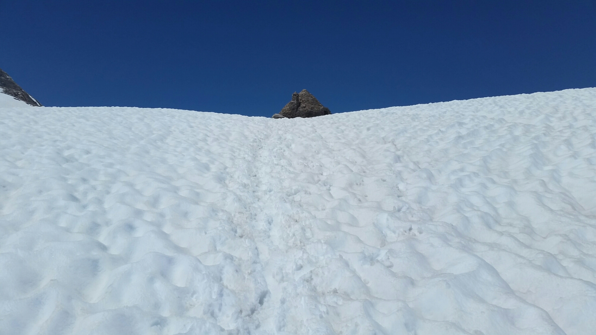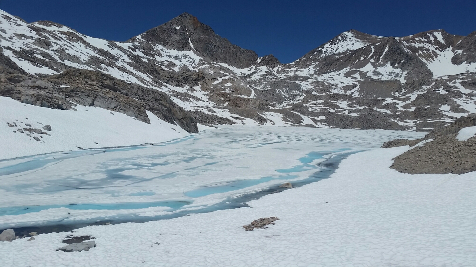 Today is up and over Muir Pass, which turned out to be the snowiest of them all, but my favorite.  Go figure, because the last time I hiked through the Sierra Muir Pass was my least favorite.  Near the top of the pass I was all alone without a hiker in sight, and the wind was calm and the earth was completely quiet.  I couldn’t see any trail because the snow took it all and I felt like John Muir up there.