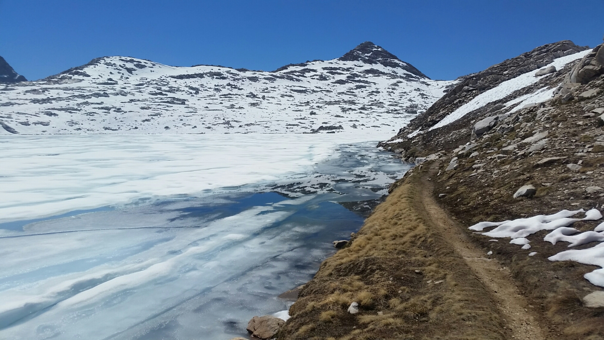 Frozen lakes and snow, the trail formed snow bridges over waterfalls and raging streams.