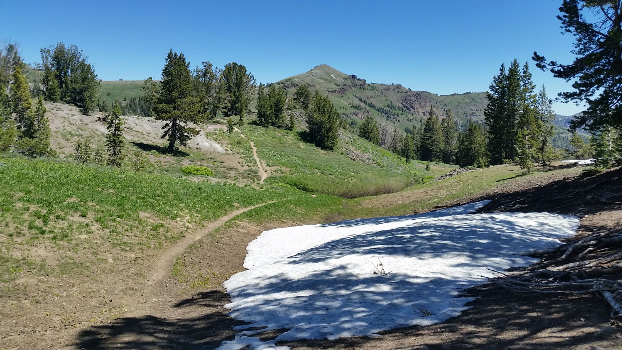 Most of the day I spend in my own head, which isn’t always a bad thing.  My pack is lighter now that I have no bear canister and no snow gear, so my body just moves along like it knows what it’s doing.  Up and down, through forest and hillside covered with wildflowers and small prickly bushes.  Flies are out now, but mostly I can out-walk them.  They’re only bad if I stop and try to eat lunch.