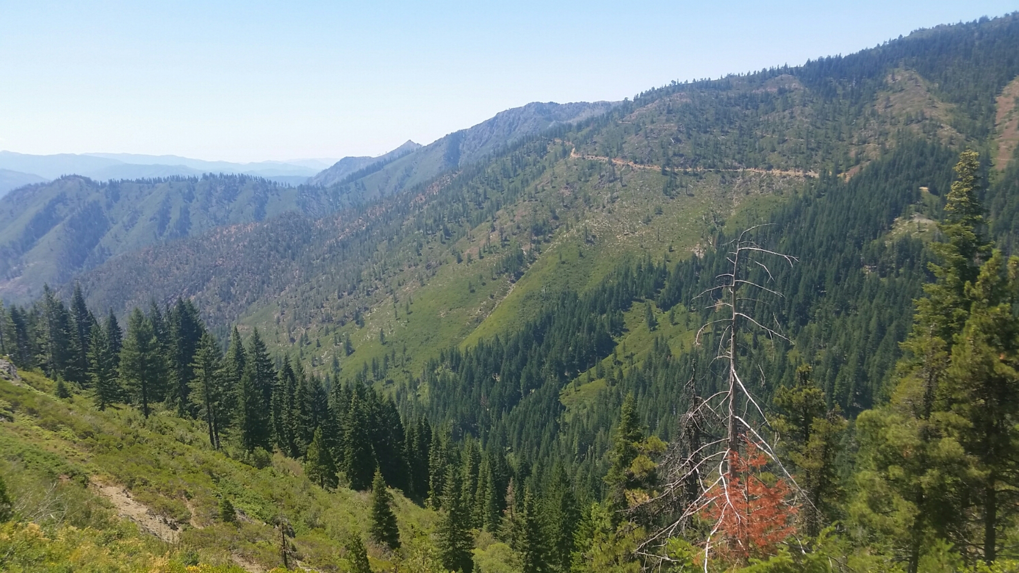 Today is my last full day in California, and I finished up the last big climb before my mid morning snack. I could see the tiny village of Seiad Valley getting smaller, likewise the Klamath River, which now both seem insignificant from way up here.