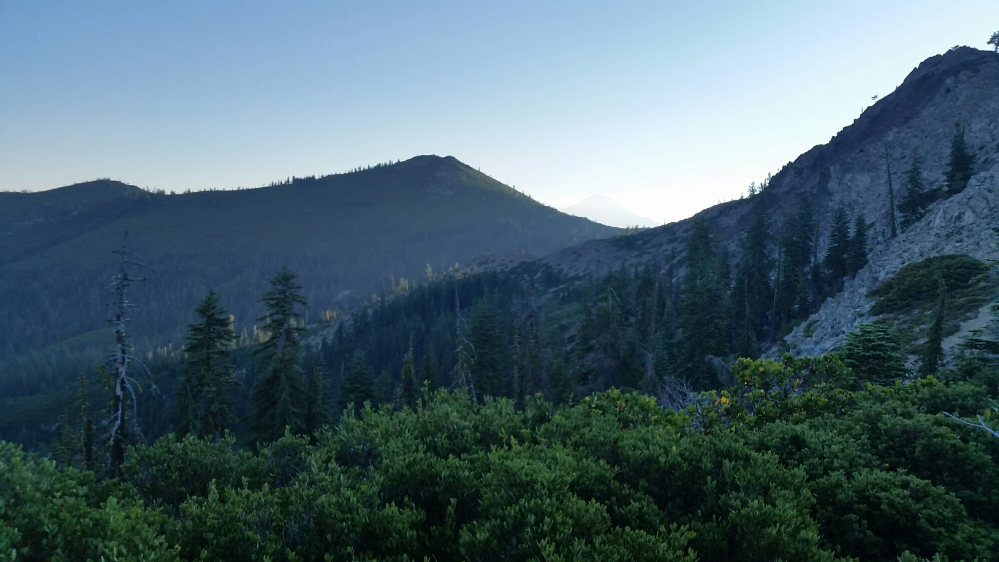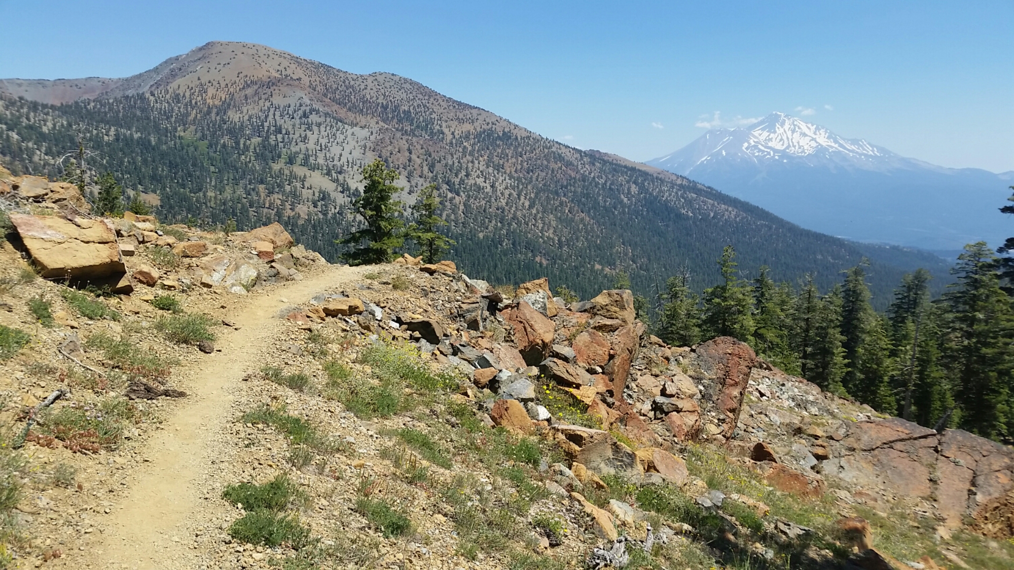 Walk on, put on pop music and cruise along the side if the mountain, lip-syncing.  Rain threatens, wind picks up, and there’s old Mt. Shasta, haze lifted.  It looks so tall and clear and proud of itself.