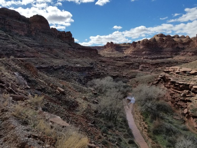 But first, I have to take my revenge on old Courthouse Wash. The river bounced it’s way along the canyon, tamer now but still full of force and intention and memory. It knew me the moment I pushed a stiff foot into its icy waters and held me fast for a moment, but that was all. I forged on and soon the cliffs rose high above me and rock amphitheaters opened up and before I knew it Courthouse Wash was at its terminus and I was back in Moab.