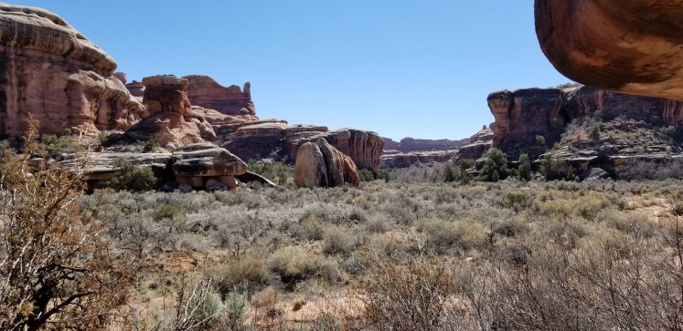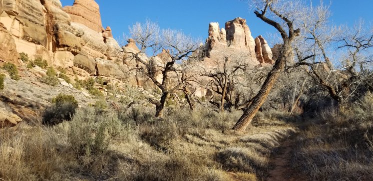 Today was spent entirely off the Hayduke route. We’re on a 20 mile trail called the Salt Creek trail, which is notable for running water most of the year, petroglyphs, and towering rock features. It’s the first legitimate trail I’ve been on since the Devils Angel trail, which I began this whole journey on. For a moment, I forgot what it’s like to walk cross country. Maybe my brain turned off a little too much, because I grew fatigued and my mood felt soured. One of the great things about the Hayduke trail is just how engaged my mind feels, and perhaps that left me for a spell today.
