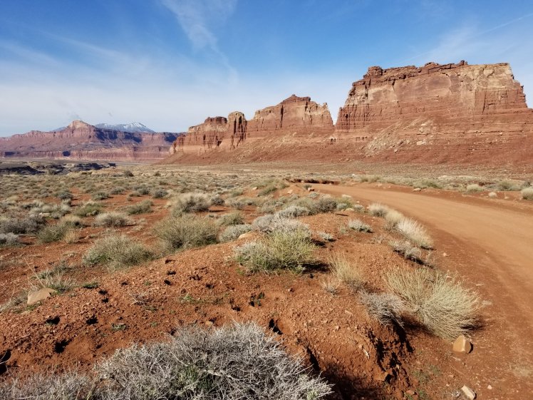 Disaster. One of the best things to know about deviating from the Hayduke route: do so at your own risk. The entire section I chose to walk was covered in one impassable wash after another and by the time I finally got to the bridge, two hours later, I was completely spent. Turns out you’re supposed to do the road walking for a reason. Thankfully, after a quick scramble up a cliff I reach a 4×4 road so I can turn my brain off and cruise. Along the way I pass a tiny home camped in an open field with two sleepy dogs lazing in a shadow while the morning sun rises high. Some people really know how to live–what a place to park your moveable home.