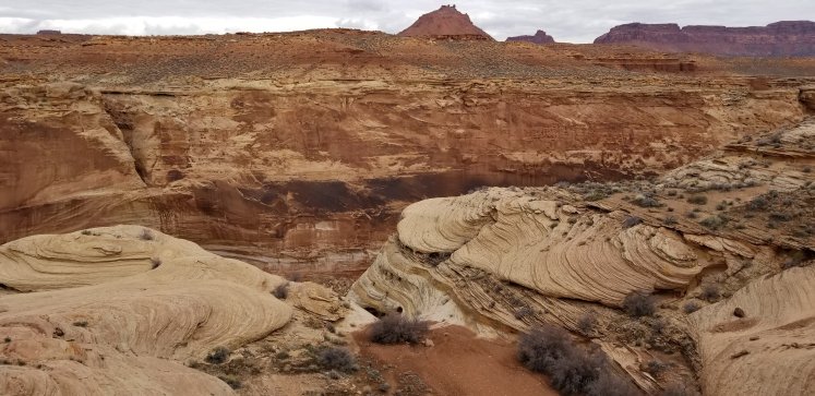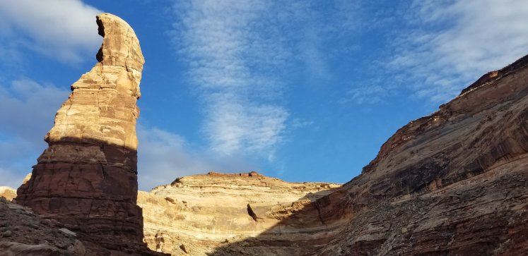 Section 4, which begins at Hite (my campground for the night) is a quick one with less than 40 miles to cover until I reach highway 94 to hitch in to Hanksville. I start the day off by engaging in that dangerous Hayduke passtime–cutting corners to shave off miles of road walking. I know I have to cross the bridge over the Colorado River, and I know it’s only about a mile to get there as the crow flies, while it’s about 3 if I take the roads to it.