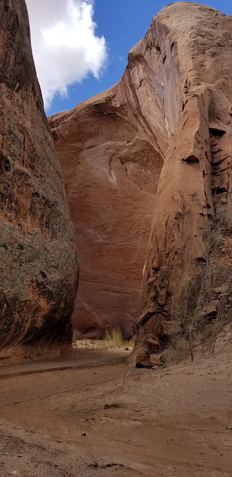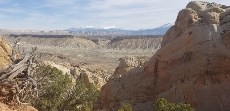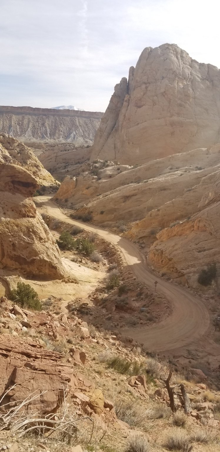 Things come and go so quickly out here. Train your eyes on a target and then it blurs by–turn around and the horizon has swallowed it. Where are the Henries? The La Sals? The arches and monuments of Arches and Canyonlands? Today I charged up the Burr Trail switchbacks and crossed the Waterpocket Fold and just like that, another obstacle behind me. Or should I say…beside me. because this particular landmark runs a nearly 200 mile course, and for most of today and tomorrow I’ll be walking right next to it.