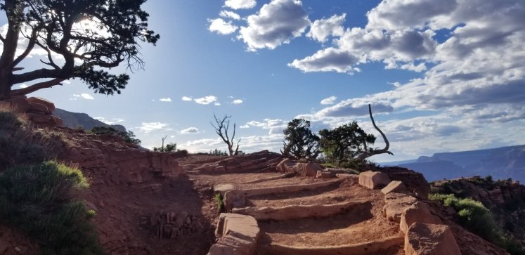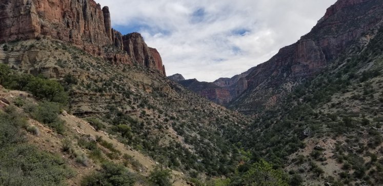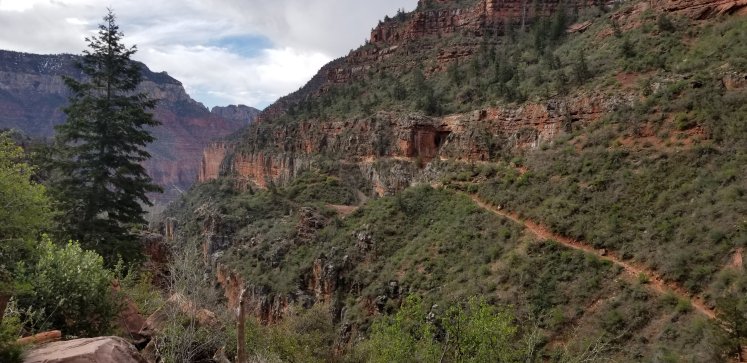 The traverse down and across is remarkable easy, and I leave myself the whole afternoon to make my way up the opposing wall. In my hip belt pocket I’ve stashed away a couple caffeine snacks, and I dose myself regularly as the Colorado River begins falling away below me. People, in pairs or trios or solo, pass in the opposite direction with no regard for their future selves. Every step down now means a step up later. After a couple thousand feet I’ve gained the Tonto Platform, which runs parallel to the river below and offers huge views of the many-channeled canyon. I break and lean against a rock, blessedly covered in shade, and feel sweat roll across my body and soak my shirt. My pack is covered in my body’s wetness, and I kick it so that it rests upright on the ground. Should I ease my burden by stealing some food from within? No, I think, it’s too hot to eat. I settle for a long drink from my water bottle–half a liter before I pause for breath–and then set off again, upward. There’s a whole pine forest above and soft needles to make my bed on.
